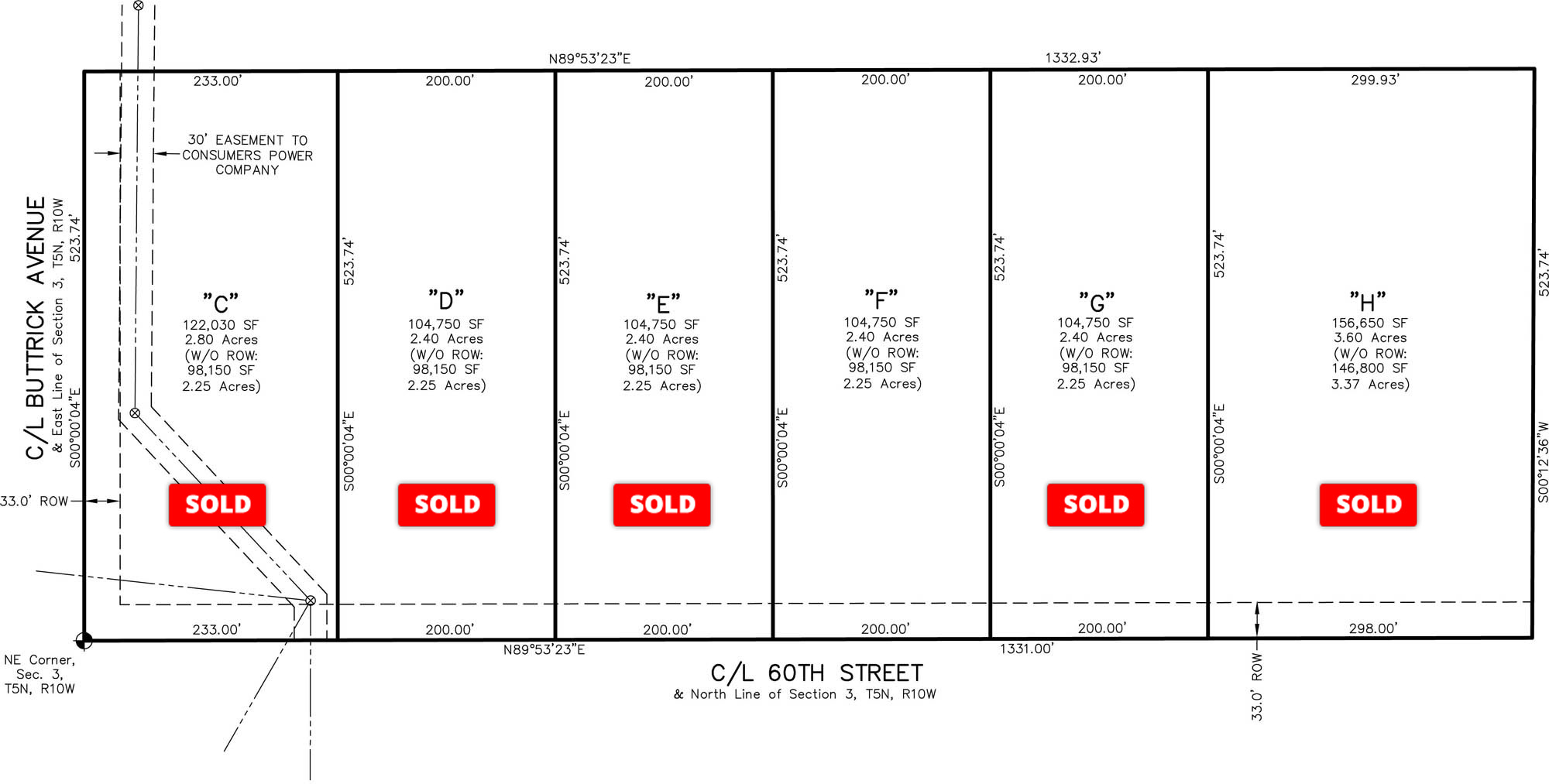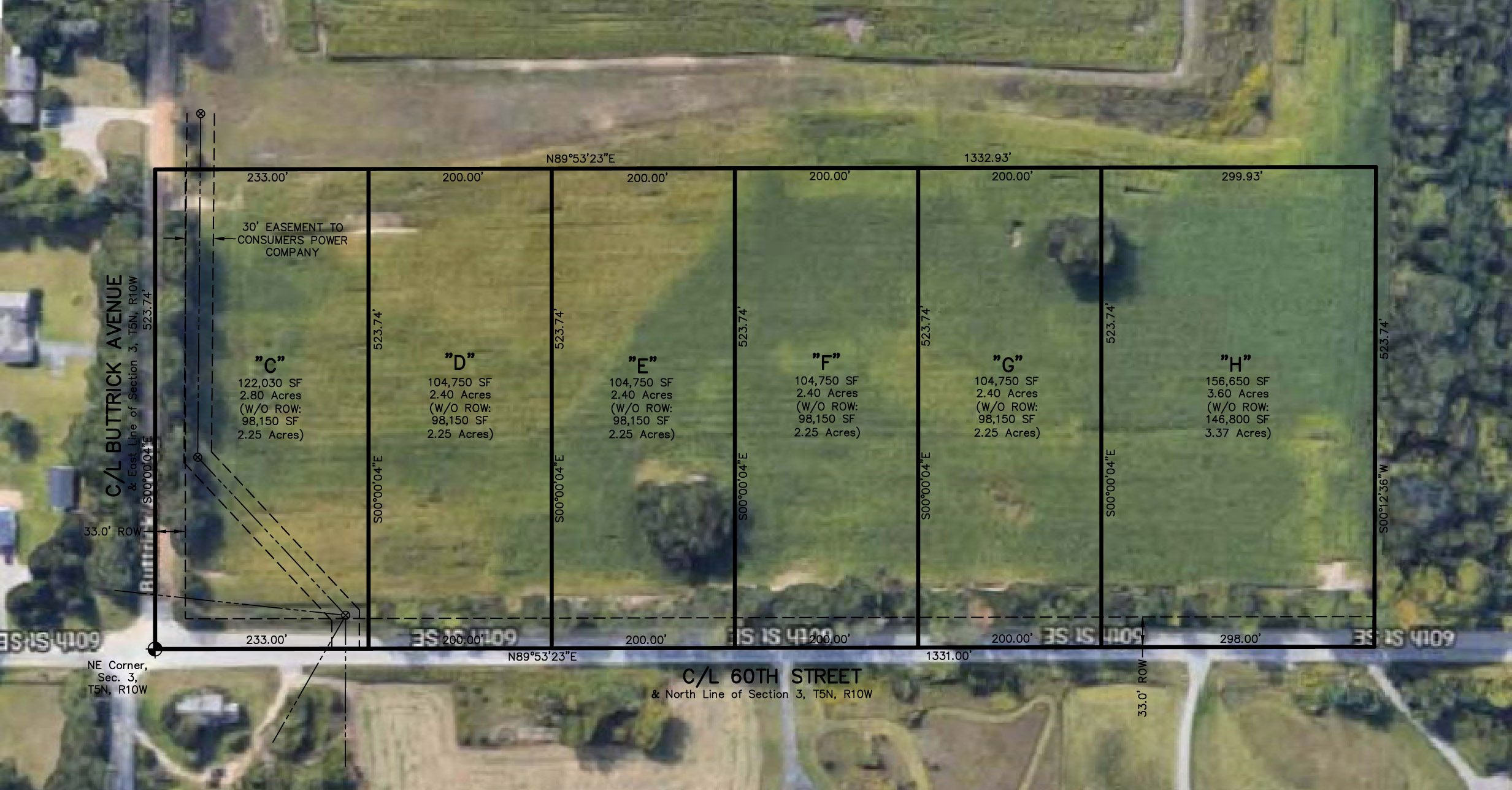 ** Lot sizes 2.4-3.6 acres are approximate. Surveys for each lot are available above.. Lots C-H are sold as unimproved land and are as is.  The cost to hookup utilities and improve the land is the buyers responsibility. Determining the availability and cost of Natural Gas is also the buyers responsibility.